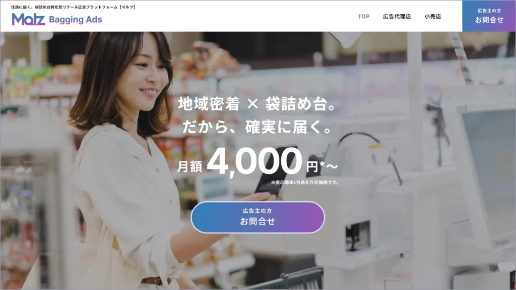 P2M株式会社(本社:東京都千代田区、代表取締役:木地貴雄)はこのたび、スーパーや小売店の袋詰め台(サッカー台)を活用した新たな広告プラットフォーム「Malz(マルツ)」を正式リリースいたしました。